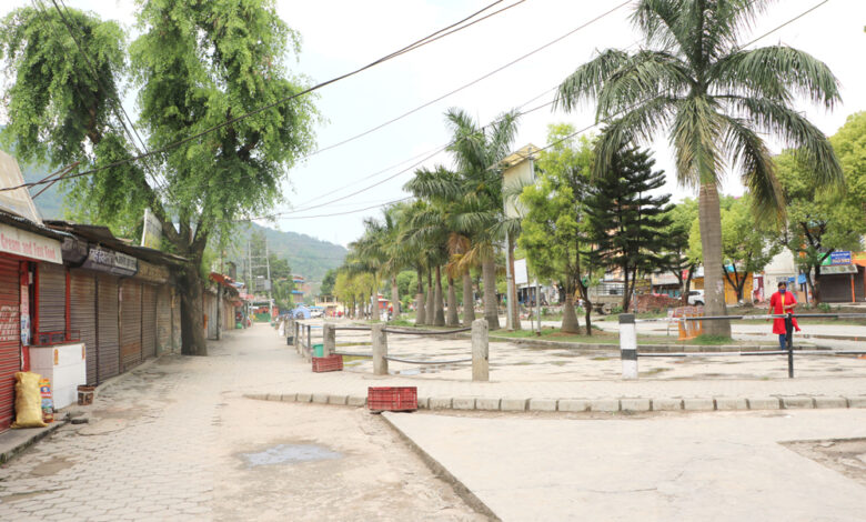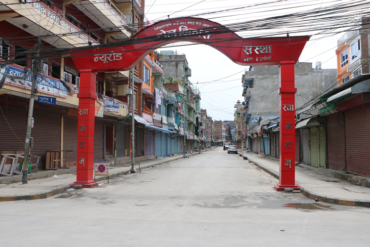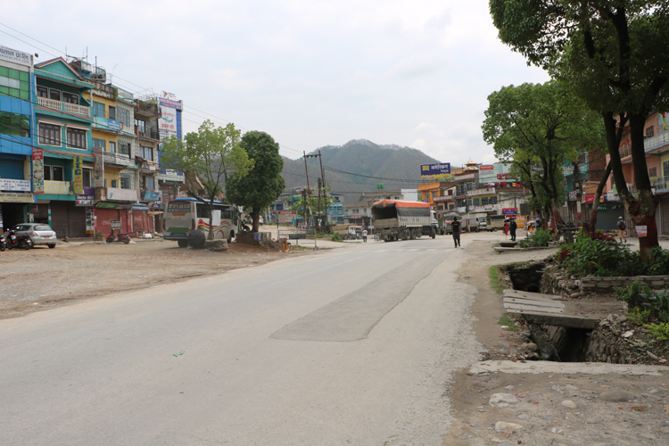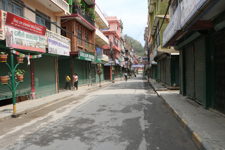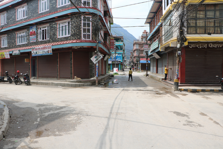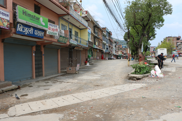 नयाँ भेरियन्ट सहितको कोरोना भाइरस संक्रमण दर बढ्दै जानुका साथै संक्रमणको जोखिम उच्च बन्दै गरेपछि जिल्ला प्रशासन कार्यालय तनहुँले बुधबार राति १२ बजेदेखि जारी गरेको निषेधाज्ञाका कारण सुनसान बनेको दमौली बजार क्षेत्र ।