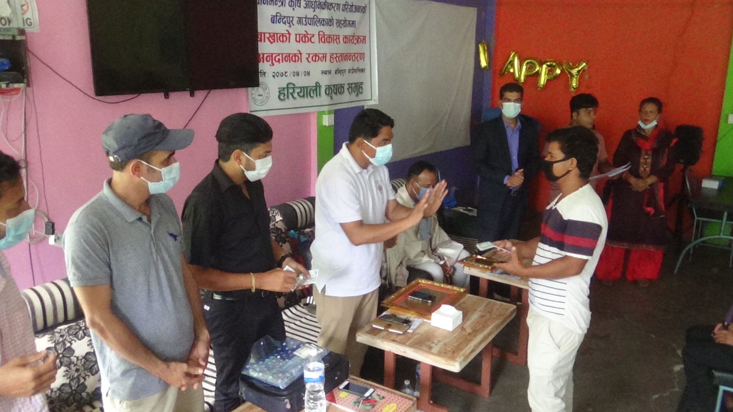 उक्त कार्यक्रम अन्तर्गत हरियाली कृषक समूहले संचालन गरेको बाख्राको पकेट योजनामा छनोट हुन सफल वडा नं. १ का ४१ जना कृषकलाई लागत सहभागिताको पचास प्रतिशत अनुदानको रकम गाउँपालिका अध्यक्ष पूर्णसिंह थापाले कृषकलाई हस्तान्तरण गरेका छन् ।