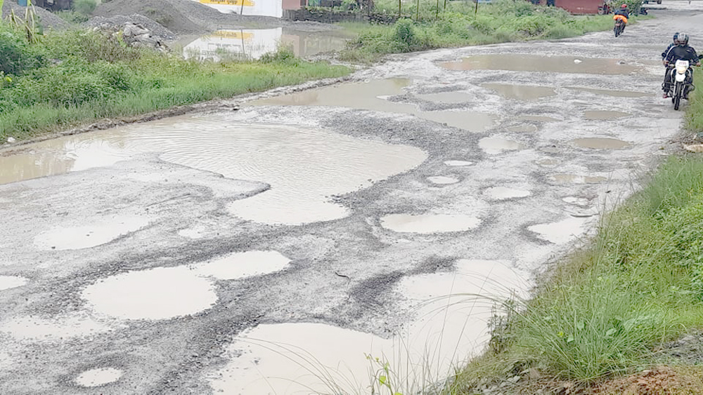 सडकमा बग्ने पानीको व्यवस्थापन गर्न नसक्दा सडकमा खाल्टैखाल्टा, यात्रुले सास्ति झेल्दै