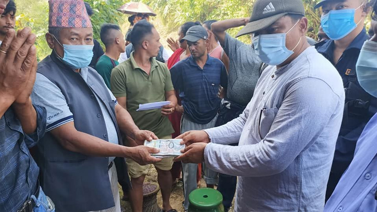 गत सोमबार साँझ चितुवाको आक्रमणमा परी नौ वर्षीया बालिका स्वीकृति थापाको मृत्यु भएको थियो । गाउँपालिकाका अध्यक्ष पूर्णसिं थापाले मृतक बालिकाको हजुरबुबा यामबहादुरलाई बुधबार उक्त रकम प्रदान गर्नुभयो । दुवै निकायले राहतस्वरुप तत्कालका लागि रु ५०/५० हजार सहयोग गरेका हुन् ।