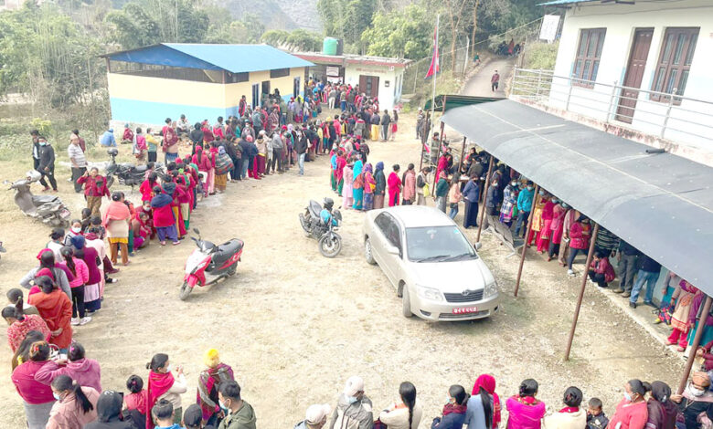 तनहुँको व्यास नगरपालिका-५ स्थित पतेनी आधारभूत स्वास्थ्य केन्द्रमा आइतबार कोरोना विरुद्धको खोप लगाउन सर्वसाधारणको भीड। व्यास नगरपालिकाका १४ वटै वडाका स्वास्थ्य संस्थामार्फत् भेरोसेल र एष्ट्राजेनिकाको दोस्रो मात्रा लगाउन सुरु गरिएको छ । तस्बिर : रासस