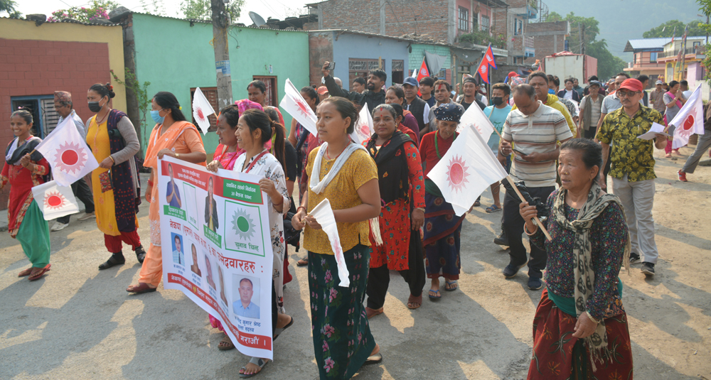 चुनावी प्रतिवद्धताका विषयमा जानकारी गराउँदै उम्मेदवारहरुले मतदाता भेटघाट गर्दै आफूहरुलाई मत दिन आग्रह गरेका छन् ।