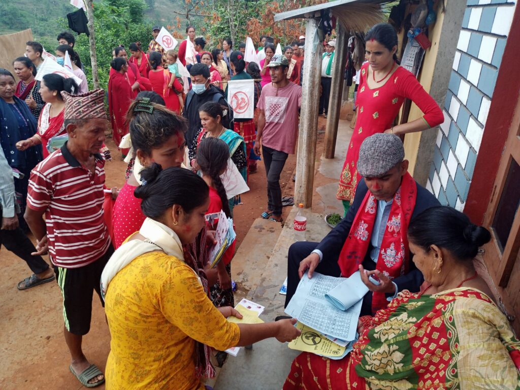 होमपेज /तस्विर/चुनाव प्रचार प्रसार चुनाव प्रचार प्रसार २५ बैशाख २०७९, आईतवार ११:२४ तनहुँको बन्दिपुर गाउँपालिकामा नेकपा माओवादी केन्द्रका उम्मेदवारहरुको पक्षमा मत माग्दै प्रचारप्रसार तथा घरदैलो अभियानमा हिडेका माओवादी केन्द्रका उम्मेदवार, नेता तथा कार्यकर्ताहरु । तस्विर : भञ्ज्याङ सेयर गर्नुहोस् प्रतिक्रिया दिनुहोस् सम्बन्धित खवर