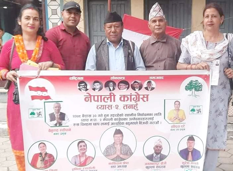 कूल १४ वडामध्ये नेपाली कांग्रेसले ११ वडामा प्यानल सहित जितेको छ भने नेकपा एमालेले तीन वडामा वडाध्यक्ष जितेको छ । एमालेले वडाध्यक्ष जितेको वडामा पनि नेपाली कांग्रेसले सबै सदस्य जितेको छ । एमालेले व्यास-४, ५ र ७ को वडाध्यक्षमात्रै जितेको छ भने वडा नं. १२ मा एक जना सदस्य जितेको छ ।