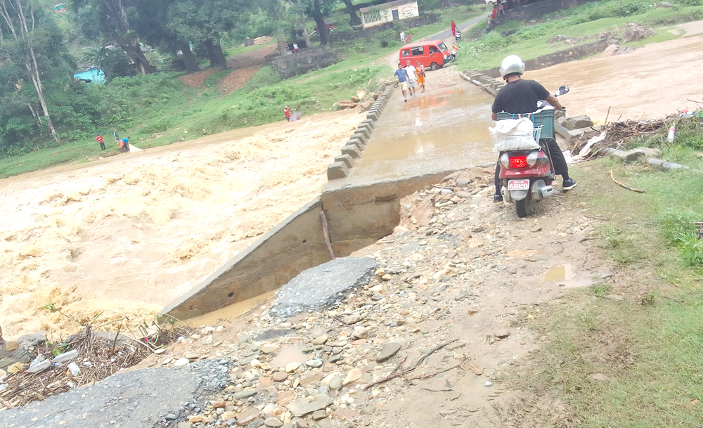 भानु मोटर मार्ग अन्तरगत भानु-२ र ५ वडा नं. जोड्ने चुँदी खोलाको बाङ्गेरुअ पुलको पर्खाल भत्काउँदा यातायातका साधन सञ्चालनमा आउन सकेका छैनन् ।