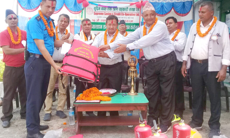 तनहुँको म्याग्दे गाउँपालिका-४ थर्पुस्थित सुप्रिम बचत तथा ऋण सहकारी संस्थाले प्रहरीलाई विपद् व्यवस्थापन सामग्री सहयोग गरेको छ। सहकारीको मंगलबार आयोजित साधारणसभाको अवसरमा प्रहरी चौकी थर्पुलाई विपद् व्यवस्थापन सामग्री सहयोग गरिएको हो ।