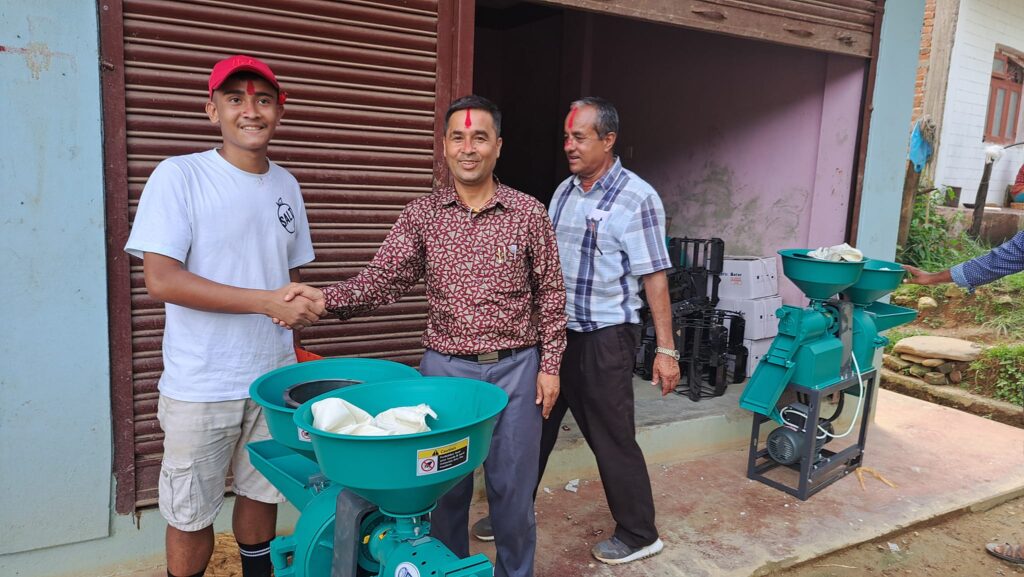 तनहुँको भानु नगरपालिका-४ स्थित खमलटारी बडहरे कृषक समूहलाई आधुनिक कृषि औजार वितरण गर्दै भानु नगरपालिकाका नगर प्रमुख आनन्दराज त्रिपाठी । समुहलाई प्रधानमन्त्री कृषि आधुनिकिकरण परियोजना, परियोजना कार्यान्वयन इकाई गोरखा धान जोन अर्न्तर्गत ८ थान (७ एचपी)को मिनी टिलर, १ थान (९ एचपी)को मिनी टिलिर, ५ थान कुटानी पिसानी मिल, ५ थान औषधी र्छर्ने मेसिन, १ थान डिजिटल तराजु लगायतका कृषि औजार ५० प्रतिशत लागत सहभागितामा वितरण गरिएको हो ।