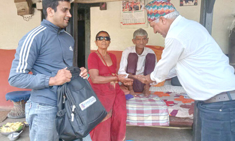 तनहुँको बन्दिपुर गाउँपालिका-३ का वडाध्यक्ष परमेश्वर भट्टराइ वडाका घरघरमै पुगेर लावग्राहीलाई सामाजिक सुरक्षा भत्ता वितरण गर्दै । गाउँपालिकाले वडा, टोल तथा घरघरमै पुगेर सामाजिक सुरक्षा भत्ता वितरण कार्य सुरु गरेको छ । तस्विर : भञ्ज्याङ