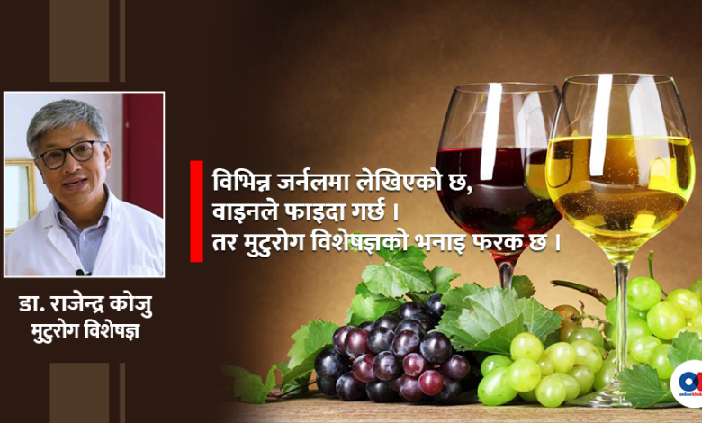 मुटुरोग विशेषज्ञ डा. कोजुका भन्छन्, ‘रेड वाइन खाऊ त्यसले मुटुको स्वास्थ्यलाई फाइदा गर्छ भनेर डाक्टरहरूले भने कतै भनेको पाइएको छैन । वाइनमा १० देखि १७ प्रतिशतसम्म अल्कोहलको मात्रा हुन्छ । त्यति मात्रामा भए पनि अल्कोहल दैनिक रूपमा सेवन गर्दा शरीरमा अल्कोहलको लेबल बढ्दै जान्छ । जुन स्वास्थ्यको लागि लाभदायक हुँदैन ।’