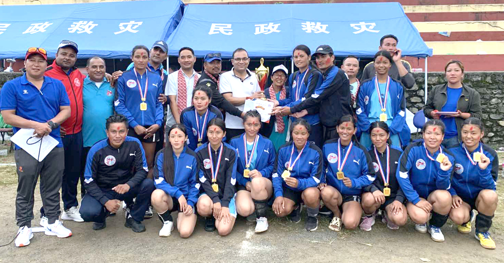 यता महिलातर्फफाइनलमा नेपाली राष्ट्रिय टोलीकी टिम कप्तान अरुणा शाही सम्मिलित टिम म्याग्दीले पर्वतलाई २५-१८, १३-२५ र २५-१८ ले जित्दै स्वर्ण पदक हात पार्न सफल भएको छ ।