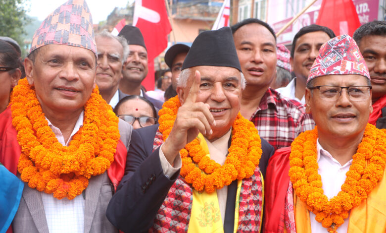 ‘नेपालको लोकतन्त्र, राजनीतिक अवस्थालाई फेरी पनि अस्थिर बनाउने षडयन्त्र भइरहेका छन् । मुलुकलाई पछाडीतिर धकेल्ने कोशिषहरु भइरहेका छन् । प्रतिगमन मुन्टो उठाउन खोज्दैछ’, नेता पौडेलले भने, ‘प्रतिगमानबाट देशलाई जोगाउन जरुरत रहेको छ । जनताको उत्थानका लागि परिवर्तनलाई जोगाउनुपर्ने र शुसासन कायम गर्दै गाउँ गाउँमा रोजगारी सिर्जना गर्ने मेरो लक्ष्य छ ।’