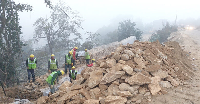 पृथ्वी राजमार्गको मुग्लिङ-पोखरा सडक बिस्तार योजना अन्तरगत जामुने-पोखरा खण्डको शुक्लागण्डकी स्थित गाछेपानीमा सडक टेवा पर्खाल लगाइदै । सडक बिस्तार अभियान अन्तर्गत राजमार्गको आँबुखैरेनी-जामुने खण्ड र जामुने-पोखरा खण्डमा सडक चौडा गर्ने कार्यलाई तीव्रता दिइएको छ । तस्विर : निशा थापा मगर/भञ्ज्याङ