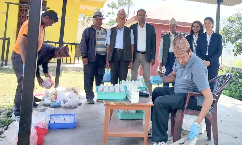 तनहुँको म्याग्दे गाउँपालिका-३ बेल्टारमा बिहीबार आयोजित माटो परीक्षण शिविरमा किसानलेे ल्याएका माटो परीक्षण गरिँदै । गाउँपालिकाको आयोजना र माटो तथा मल परीक्षण प्रयोगशालाको सहयोगमा माटो परीक्षण गरिएको हो । तस्बिर: भञ्ज्याङ