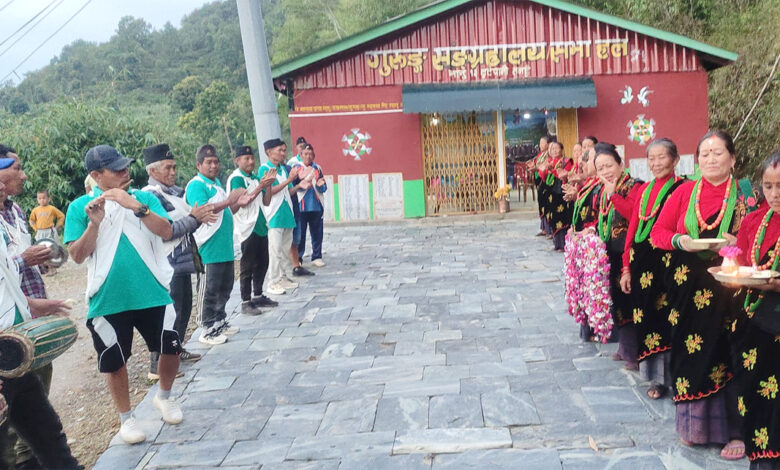 तनहुँको भानु नगरपालिका-१३ ठूलोढुङ्गा स्थित टुटेपानी सामुदायिक होमस्टेमा आएका पाहुनालाई स्वागत गर्ने तयारीमा होमस्टे सञ्चालकहरु । होमस्टेमा आउने पाहुनालाई स्थानीयले बासुरी र मादलको धुनसंगै गुरुङ समुदायको परम्परा अनुसार स्वागत गर्ने गर्दछन् । गण्डकी प्रदेशकै नमुना सामुदायिक होमस्टेका रुपमा व्यवस्थापन गरिएपनि यहाँ पुग्ने सडकको स्तरोन्नती नहुँदा सहजै पाहुन पुग्न नसक्ने अवस्था रहेको छ । तस्विर : भञ्ज्याङ