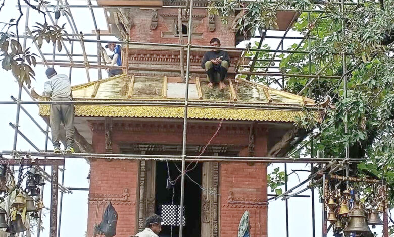 तनहुँको सबैभन्दा अग्लो स्थानमा रहेको छिम्केश्वरीमाई मन्दिरको छानो ‘प्यागोडा’ शैलीमा निर्माण, पित्तलको छानो
