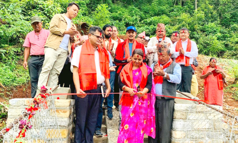 तनहुँको शुक्लागण्डकी नगरपालिका-११ को गोल्मे र १२ को जामुनेफेदी जोड्ने झोलुङ्गेपुलको उद्घाटन गर्दै पूर्वमन्त्री एवं गण्डकी प्रदेशकी पूर्वसांसद आशा कोइराला, शुक्लागण्डकी नगरपालिकाका नगरप्रमुख कृष्णराज पण्डित लगायतका । संघीय सरकारको रु ५१ लाखको लागतमा निर्माण गरिएको उक्त पुलबाट पाँच सय घरधुरी लाभान्वित हुने भएका छन् । तस्विर : भञ्ज्याङ