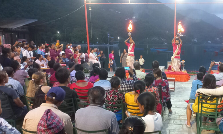 पोखराको गतिविधि हेर्न आउने पर्यटकको आकर्षण बन्दै तालबाराही सन्ध्याआरती