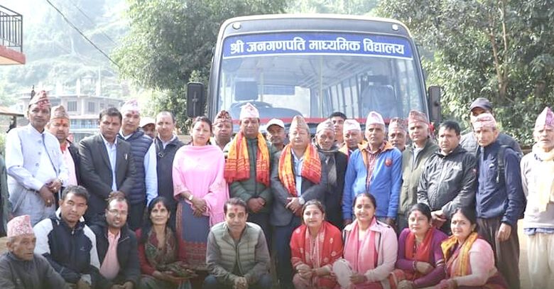 म्याग्देको जनगणपति विद्यालयलाई बस हस्तान्तरण