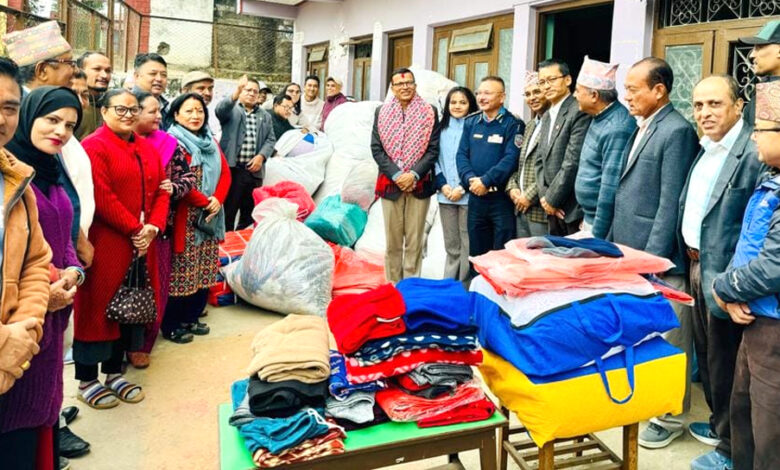 तनहुँ उद्योग वाणिज्य संघद्वारा भूकम्प पीडितलाई न्यानो कपडा सहयोग