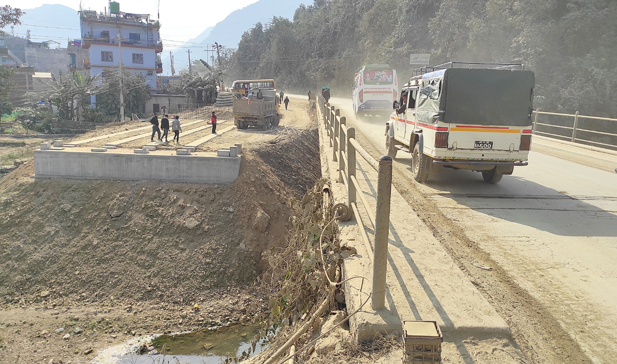 पृथ्वीराजमार्ग अन्तर्गत तनहुँको दमौली स्थित बुल्दी खोलामा मोटरेवल पुल निर्माण गरिदै । राजमार्ग विस्तार आयोजना अन्तर्गत आँवुखैरेनी-जामुने पूर्वी खण्डमा १३ वटा साना पुल, १०६ वटा स्ल्याव कल्भर्ट मध्ये १०० निर्माण र ३ वटा ठूला खालका पुल निर्माणाधिन अवस्थामा छन् । यस्तै, ६२ बक्स कल्भर्ट मध्ये ५३ वटा निर्माण सम्पन्न भइसकेका छन् ।