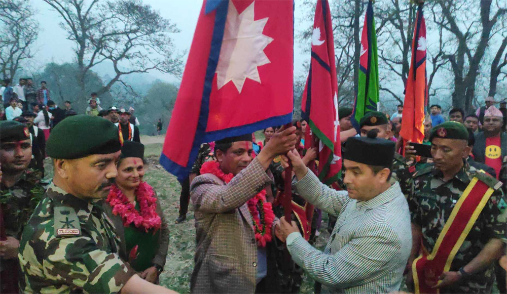 तनहुँसुरबाट पदयात्रा टोली तनहुँकै धेनुङ देउराली पुग्नेछ । धेनुङ देउरालीमा श्री नम्बर ३ राजदल गणलाई झण्डा हस्तान्तरण गरिनेछ । धेनुङ देउरालीबाट केलादीघाटसम्म पुगेको टोलीलाई श्री दि फेमस महेन्द्रदल गणलाई झण्डा हस्तान्तरण गरिनेछ । पदयात्रा टोली चैत २९ देखि आगामी वैशाख २ गतेसम्म तनहुँ खण्डमा रहनेछ।