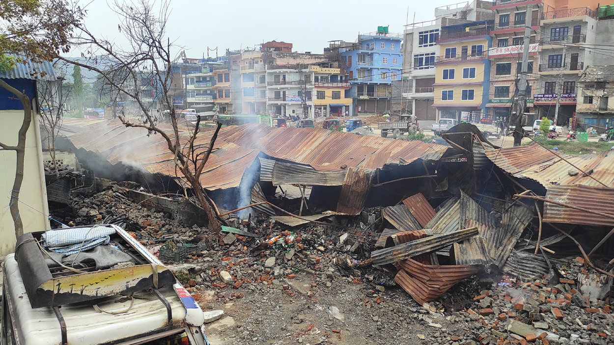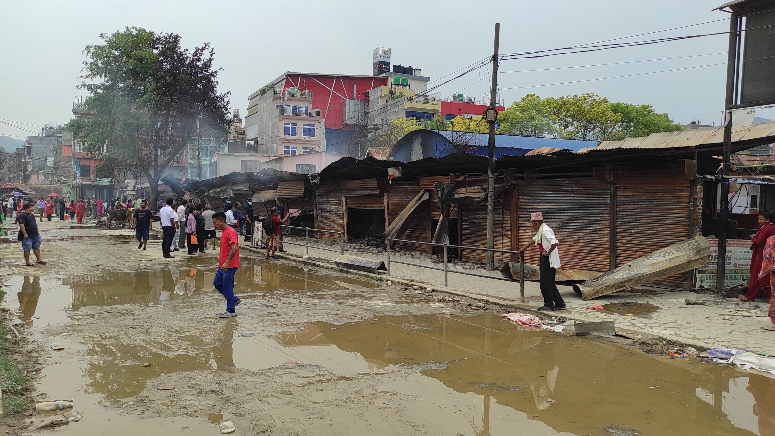 दमौलीको मुख्यचोकका सटरमा भीषण आगलागी : “पीडित भन्छन्- आगलागीले गरिखाने बाटो जलायो”