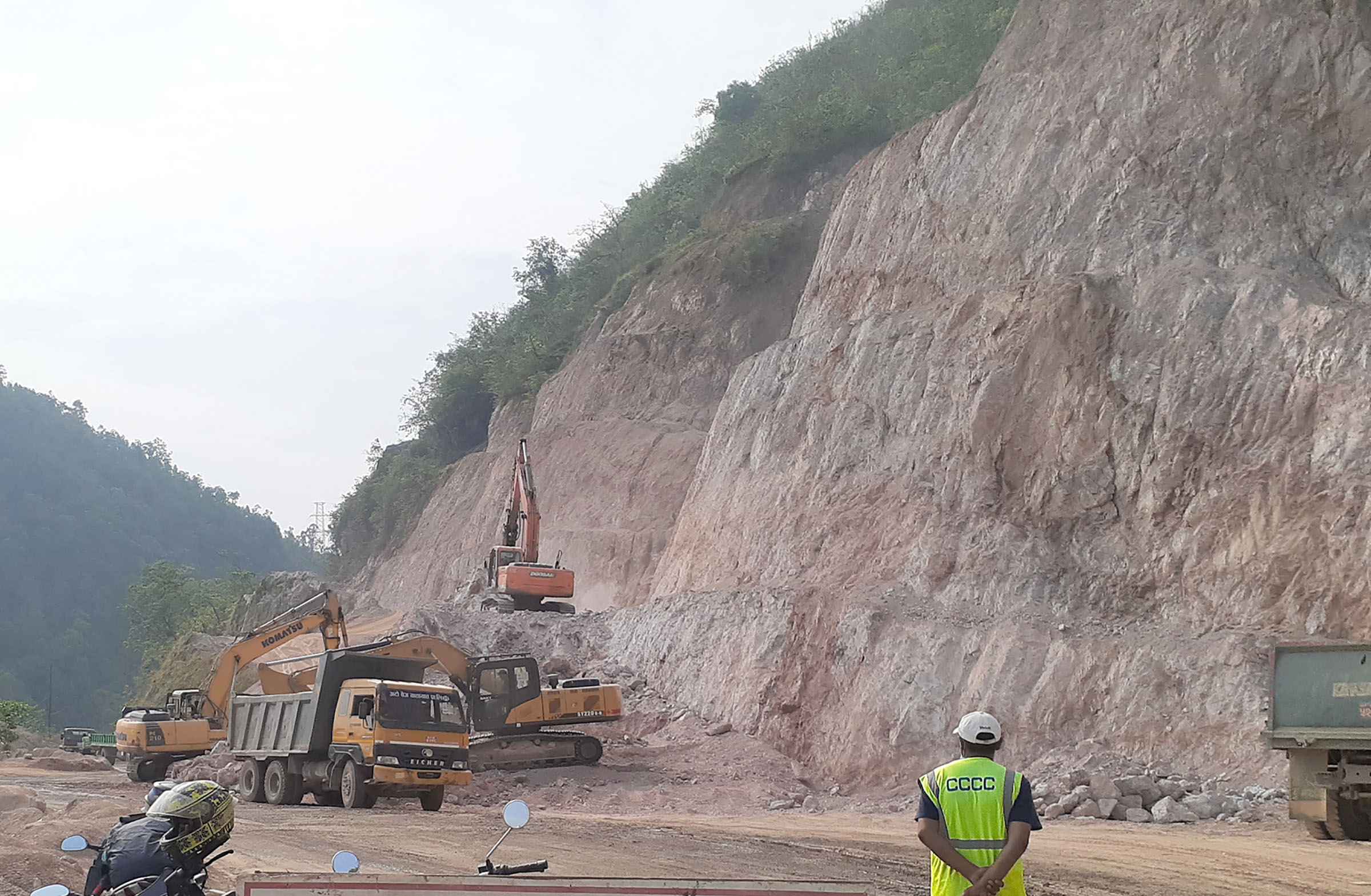 पृथ्वी राजमार्ग अन्तर्गत तनहुँको व्यास नगरपालिका-१२ छिर्कनेमा सडक विस्तारका लागि भित्ता कटान गरिदै ।
