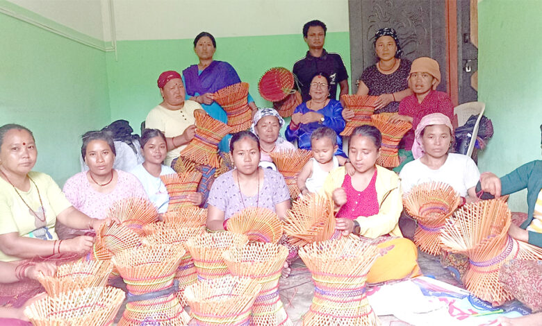 तनहुँको घिरिङ गाउँपालिकाले महिलाहरूलाई उद्यमी बनाउने उद्देश्यले सञ्चालन गरेको मुढा बुन्ने तालिममा सहभागि महिलाहरु । गाउँपालिकाको वडा नं. ३ का महिलाहरुलाई १५ दिनका तालिम प्रदान गरिएको छ । तस्विर : भञ्ज्याङ