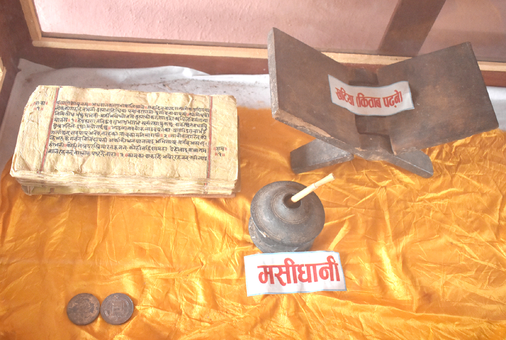 संग्राहलयको दराजमा आदिकवि भानुले प्रयोग गरेका सामाग्री पूजा–पाठदेखि भात खाने थाल, बटुका पनि राखिएका छन् । त्यहाँ राखिएका सामाग्रीले आदिकवि भानुभक्त सौखिन हुनुहुन्थ्यो भन्ने भान हुन्छ । महगो हुक्का पनि त्यहाँ सजाएर राखिएको छ । कविले लेख्न प्रयोग गरेको मसीदानी, कलम पनि त्यहाँ राखिएको छ । आदिकवि भानुभक्तले लेख्नु भएका प्राय सबै कृतिको उहाँले लेखेकै अक्षरमा पढन पाइन्छ । आदिकविले मुद्दा खेप्नु परेका कागत तमसुकहरु सबै जतनका साथ राखिएको छ । दुई पट्टि काठको फल्याकजस्तो चिल्लो काठको खबटाले च्यापिएको भानुभक्तीय पाण्डूलिपि खाटमा बसेर हेर्न सकिन्छ ।