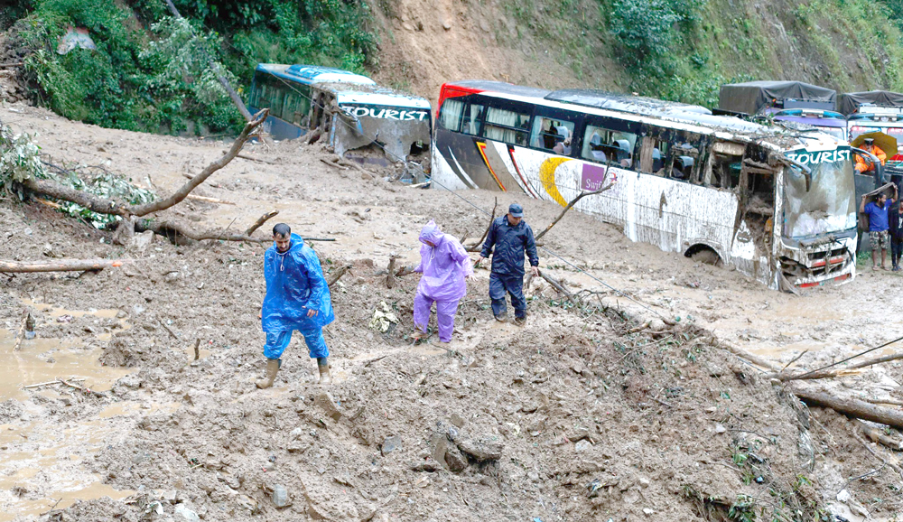 झ्याप्लेखोलामा पहिरोले पुरिएका बसबाट १४ जनाको शव निकालियो