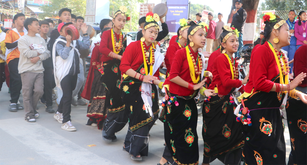 होमपेज /Top 3 Feature Posts/सांस्कृतिक भेषभुषमा सजिएका विद्यार्थी सांस्कृतिक भेषभुषमा सजिएका विद्यार्थी २८ मंसिर २०८१, शुक्रबार ०९:४१ एनप्याव्सन तनहुँद्वारा दमौलीमा आयोजित १२औँ खेलकुद महोत्सवका अवसरमा निकालिएको ¥यालीमा विभिन्न समुदायको पहिचान झल्कने भेषभूषामा सजिएर सहभागी भएका विद्यार्थीहरु । तस्विरः भञ्ज्याङ सेयर गर्नुहोस् प्रतिक्रिया दिनुहोस् सम्बन्धित खवर