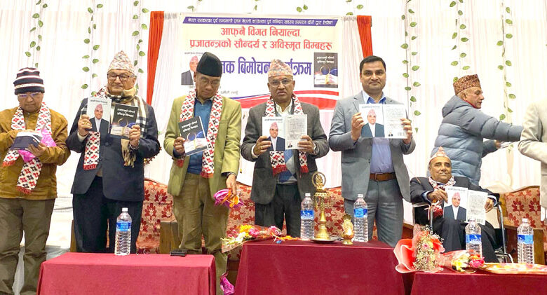 तनहुँको व्यास नगरपालिका–२ निवासी पूर्वराज्यमन्त्री एवं कांग्रेस नेता अमरराज कैनीद्वारा लिखित ‘आफ्नै विगत नियाल्दा, प्रजातन्त्रको सौन्दर्य र अविस्मृत विम्बहरू’ पुस्तकको आज दमौलीमा विमोचन गर्दै स्वास्थ्यमन्त्री पौडेलले नेपालको प्रजातान्त्रिक आन्दोलन, कांग्रेस पार्टीको सुदृढीकरणमा कैनीको भूमिकालाई बिर्सन नमिल्ने बताउनुभयो ।