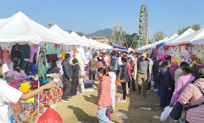 तनहुँ उद्योग वाणिज्य संघले दमौलीमा आयोजना गरेको नवौं तनहुँ महोत्सव–२०८१ को व्यवसायीक स्टलहरुमा शनिबार देखिएको चहलपहल । माघ ७ गतेसम्म सञ्चालन हुने महोत्सवमा शनिबार उल्लेख्य मात्रमा दर्शकहरुको सहभागिता रहेको थियो । तस्विर : भञ्ज्याङ