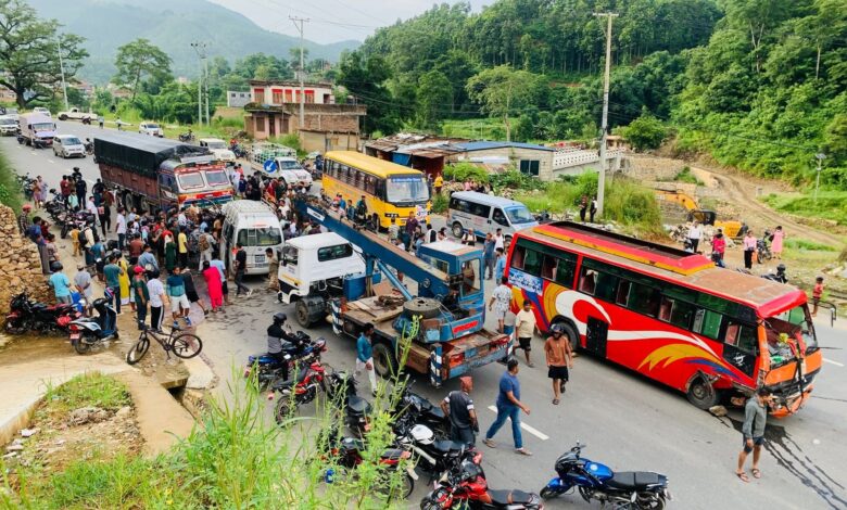 पृथ्वीराजमार्ग अन्तर्गत तनहुँको बन्दीपुर गाउँपालिका–१ डुम्रेस्थित ठूलोढुङ्गामा आज साँझ यात्रु बहाक बस र माइक्रोबस एकआपसमा ठक्कर खाएका छन् ।