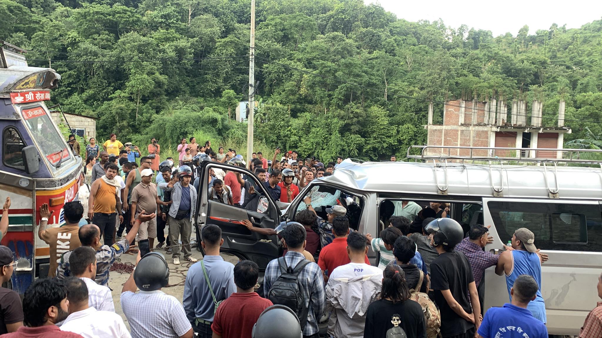 तनहुँको डुम्रेमा बस र माइक्रो ठोक्किदा २१ जना घाइते, २ जनाको अवस्था गम्भीर