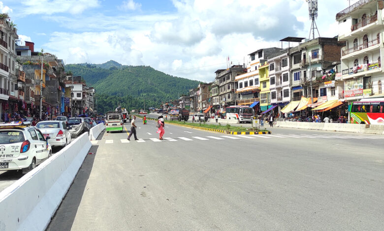 पृथ्वीराजमार्ग अन्तर्गत तनहुँको बन्दीपुर गाउँपालिका–१ स्थित डुम्रे बजार । मुग्लिन–पोखरा सडक विस्तार योजनाले डुम्रे बजार क्षेत्रमा सर्भिस लेन सहित छ लेनको सडक विस्तार गरी सडक सुरक्षाका आवश्यक मापदण्ड निर्माण तथा रङ्गरोगन गरेपछि डुमे बजार क्षेत्र चिटिक्का र आकर्षक देखिन थालेको छ । तस्विर : नारायण खड्का/भञ्ज्याङ