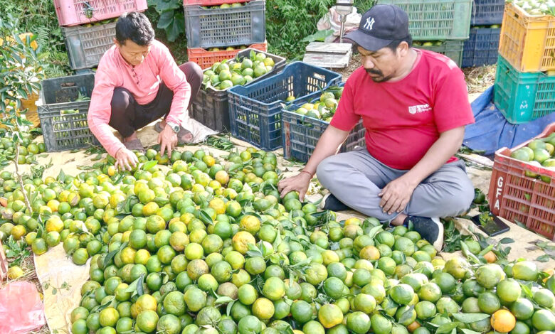 तनहुँको घिरिङ गाउँपालिका–३ का कृषक दहल सिं थापाले उत्पादन गरेका सुन्तला खरिद गरी बजार पठाउने तयारी गरिदै । व्यवसायिक रुपमा सुन्तला खेती गर्दै आएका थापाले उत्पादित सुन्तला बारिबाटै व्यापारिलाई बिक्री वितरण गर्दै आएका छन् ।