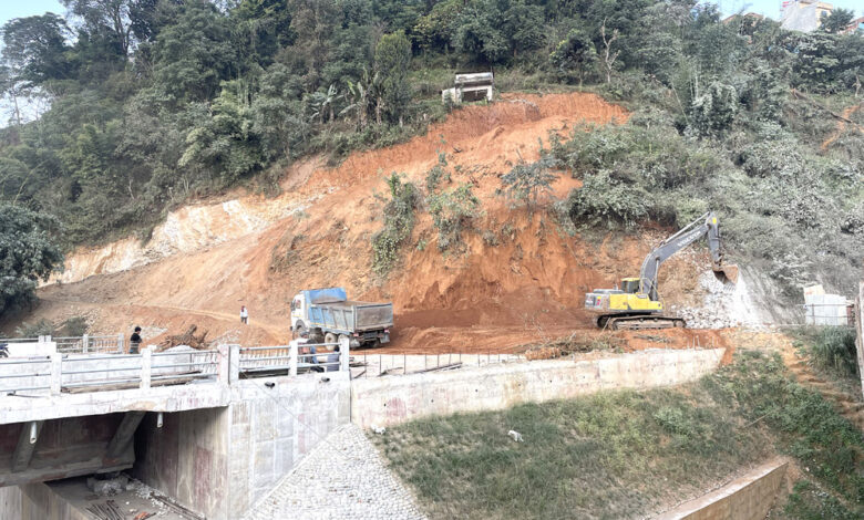 पृथ्वीरामार्जको मुग्लिन–पोखरा सडकखण्ड अन्तर्गत तनहुँको व्यास नगरपालिका–४ र ५ मादी नदीमाथि निर्माणाधीन चार लेनको पुलसम्म पुग्ने पहुँच सडक निर्माणका लागि भित्तो कटान गरिदै । सडक विस्तार योजनाले आगामि वैशाखसम्ममा पुल निर्माण सम्पन्न गर्ने गरी काम अगाडि बढाएको छ । तस्विर : भञ्ज्याङ