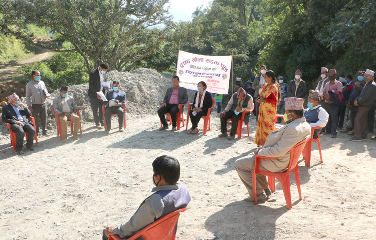 घिरिङमा शालिग्राम कोरिडर लोकमार्ग र द्रुपद खोला पुलको शिलान्यास
