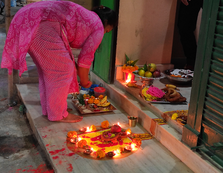 दीपावली गरिसकेपछि पूजा कोठामा दियो, कलश र गणेशसहित लक्ष्मी स्थापना गरेर गरगहना, पैसा, धान, चामल, फलफूल, सेलरोटी र फूलमाला चर्ढाई विधिपूर्वक लक्ष्मीको पूजाराधना गरिन्छ ।