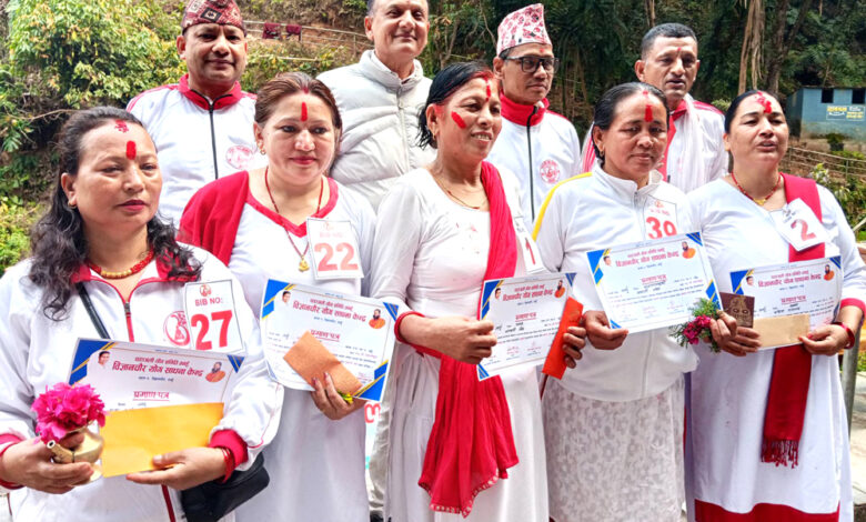 ४५ वर्षमाथिका महिलाहरु बीच मिनी म्याराथन, भादगाउँकी भगवती प्रथम