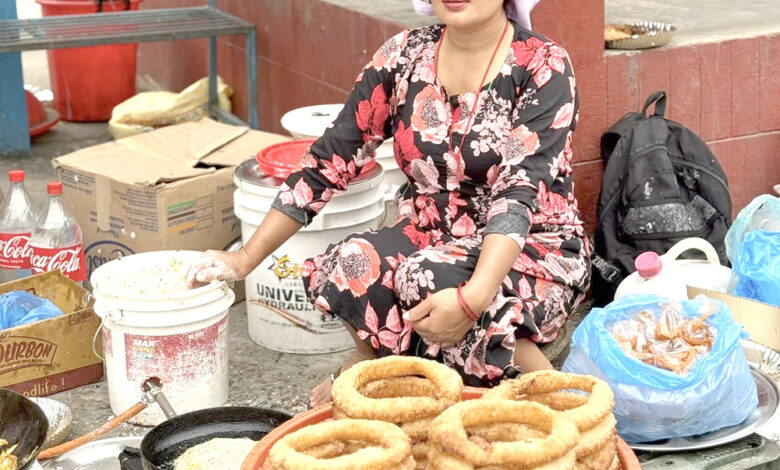 तनहुँको आँवुखैरेनी गाउँपालिकाले सञ्चालन सोमबारे कृषि हाटबजारमा बिक्रीका लागि सेलरोटी पकाउँदै एक स्थानीय महिला । गाउँपालिकाले प्रत्येक हप्ताको शुक्रबार र सोमबार कृषि हाटबजार सञ्चालन गरी स्थानीय कृषकले उत्पादन गरेका कृषि उपज बिक्री वितरण गर्न सहज बनाएको छ । तस्विर : भञ्ज्याङ