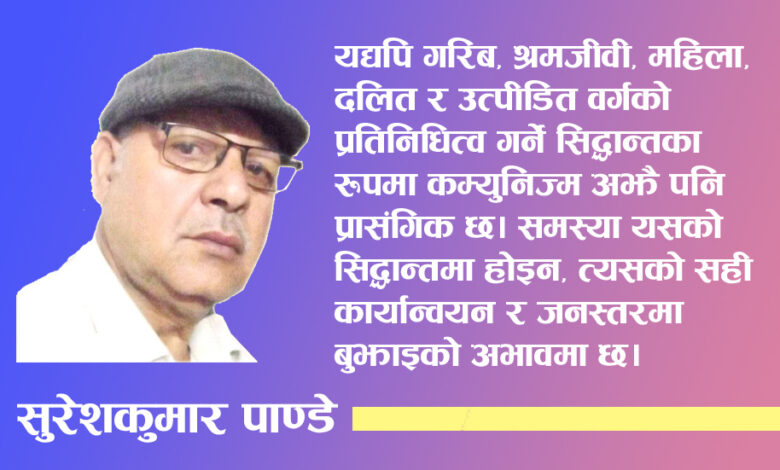 यद्यपि गरिब, श्रमजीवी, महिला, दलित र उत्पीडित वर्गको प्रतिनिधित्व गर्ने सिद्धान्तका रूपमा कम्युनिज्म अझै पनि प्रासंगिक छ। समस्या यसको सिद्धान्तमा होइन, त्यसको सही कार्यान्वयन र जनस्तरमा बुझाइको अभावमा छ।