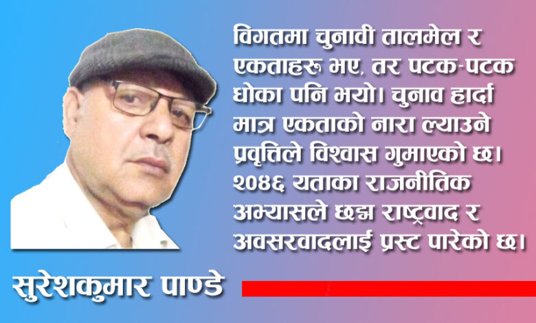 विगतमा चुनावी तालमेल र एकताहरू भए, तर पटक–पटक धोका पनि भयो। चुनाव हार्दा मात्र एकताको नारा ल्याउने प्रवृत्तिले विश्वास गुमाएको छ। २०४६ यताका राजनीतिक अभ्यासले छद्म राष्ट्रवाद र अवसरवादलाई प्रस्ट पारेको छ।