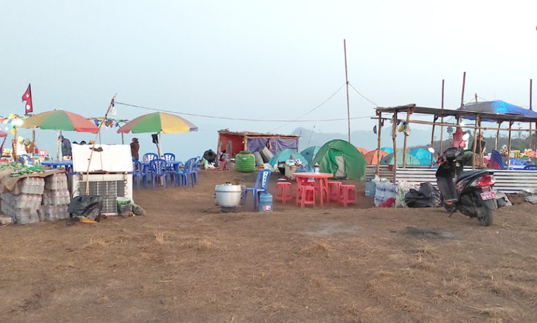 तनहुँको व्यास नगरपालिका-५ मानुङकोटमा आन्तरिक पर्यटकका आवगमन बढेसंगै खोलिएको होटलहरु । पर्यटकको चहलपहल बढेसंगै अव्यवस्थित रुपमा टहरोहरु निर्माण गरी होटल तथा रेष्टुराँहरु सञ्चालन गर्न थालिएको छ । तस्विर : नारायण खड्का/भञ्ज्याङ