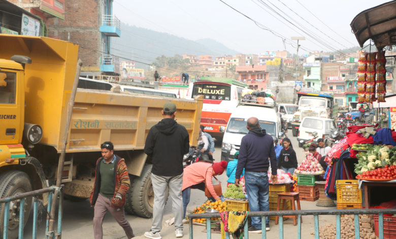 तनहुँको बन्दिपुर गाउँपालिका-१ डुम्रे बजार स्थित चन्द्रावतीचोकमा देखिएको ट्राफिक चाप । लमजुङ, गोरखा तथा तनहुँको भानु नगरपालिका लगायतका ग्रामीण क्षेत्रमा यही चोक भएर सवारीसाधान छुट्नका साथै आवतजावत गरेपनि ट्राफिक व्यवस्थापनमा ट्राफिक प्रहरी, यातायात व्यवसायी र स्थानीय बजार बासीले चासो नदिदा डुम्रेबजार क्षेत्र अव्यवस्थित र असुरक्षित बन्दै गएको छ । तस्विर : नारायण खड्का/भञ्ज्याङ