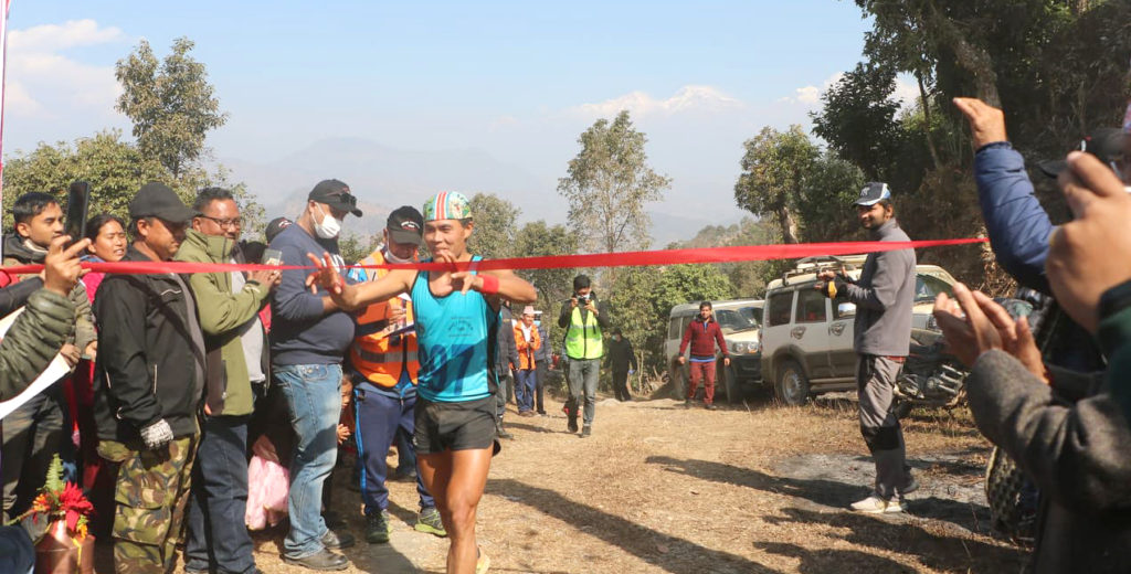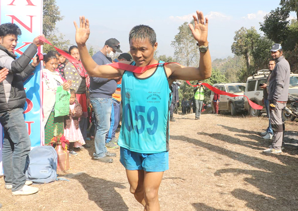 तनहुँको व्यास नगरपालिकाले आयोजना गरेको व्यास नगर अल्ट्रा म्याराथनमा तृतीया भएका बेदबहादुर सुनुवार । तस्विर : भञ्ज्याङ