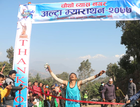 जिल्लाको व्यास नगरपालिकाले शुक्रबार शहिद दिवसको अवसरमा आयोजना गरेको चौथो व्यास नगर अल्ट्रा म्याराथन-२०७७ को उपाधी नेपाल आर्मीका देवराज महतराले जितेका छन् । कालिकोटका महतराले व्यास-५ स्थित मानहुँकोटदेखि व्यास-८ स्थित शहिद गाउँ पुलिमराङसम्मको ४४ किलोमिटरको दुरी ३ घण्टा ३ मिनेट ५१ सेकेन्डमा पार गरी प्रथम भएका हुन् ।