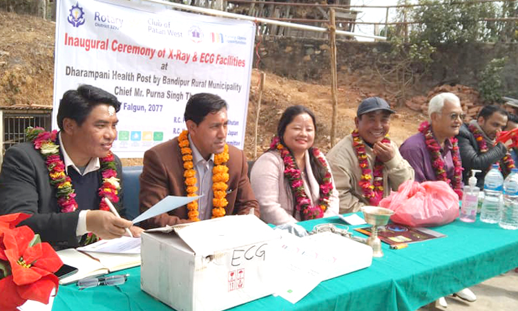 तनहुँको बन्दिपुर गाउँपालिका-६ स्थित धरमपानी स्वास्थ्य चौकीलाई एक्स-रे र इसिजि मेसिन सहयोग गरिएको छ । रोटरी क्लव अफ पाटन, रोटरी क्लव जापन र बन्दिपुर सामाजिक विकास समितिले स्वास्थ्यचौकीलाई उक्त मेसिन उपलब्ध गराएको हो ।