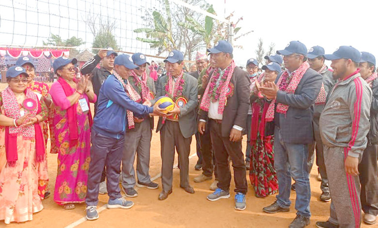 तनहुँको ऋषिङ गाउँपालिकाले शनिबारदेखि सञ्चालन गरेको प्रथम अध्यक्ष कप भलिबल प्रतियोगिताको उद्घाटन गर्दै संविधानसभा सदस्य झुलबहादुर आले । गाउँपालिकाले पालिकास्तरीय भलिबल प्रतियोगितामा प्रथम, द्वितीय र तृतीय हुने टिमलाई क्रमशः नगद १ लाख ३५ हजार, ८० हजार र ५० हजार रुपैयाँ पुरस्कार प्रदान गर्ने भएको छ । तस्विर : भञ्ज्याङ